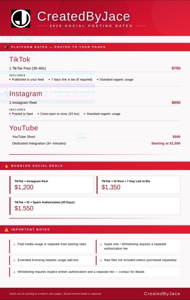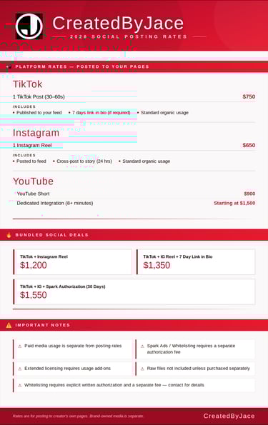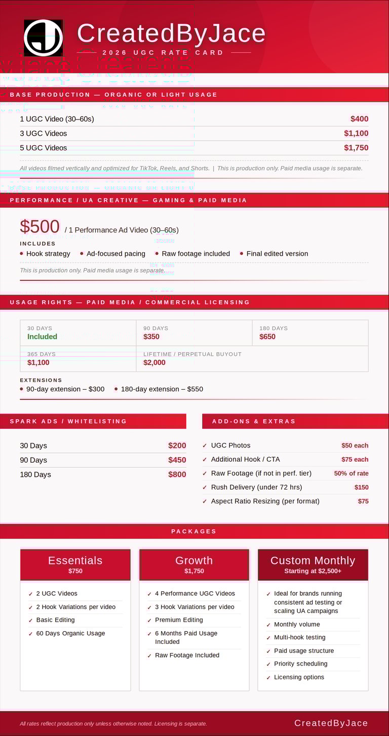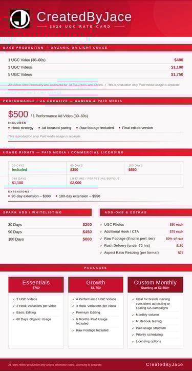 UGC/INFLUENCER RATES